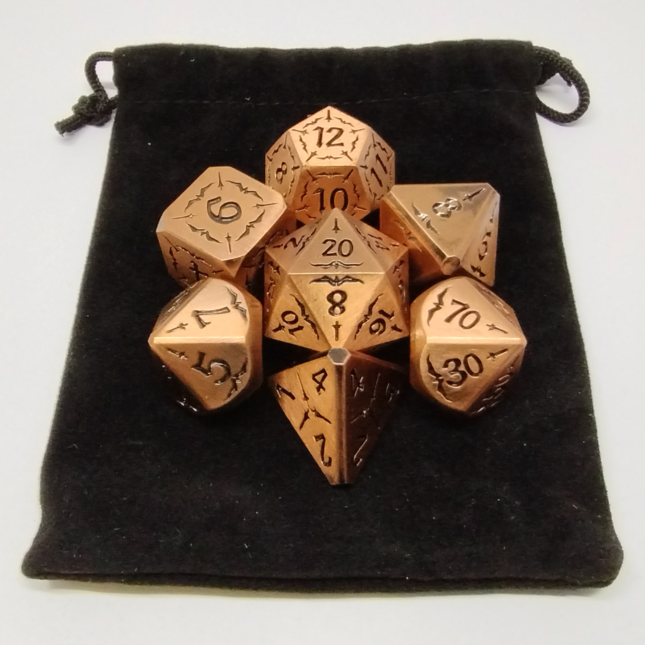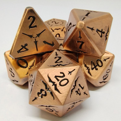 Dés escouade de guerre vampirique - cuivre antique avec pochette en suédine noire